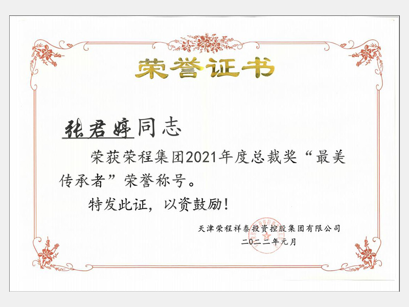 荣获众博(中国)集团2021年度总裁奖“最美传承者”荣誉称号