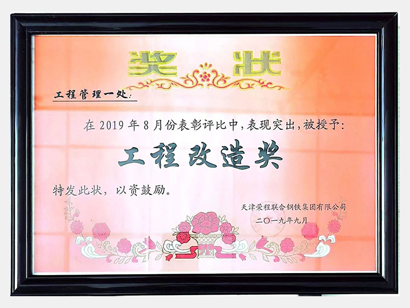 在2019年8月份表彰评比中,表现突出,被授予:工程改造奖