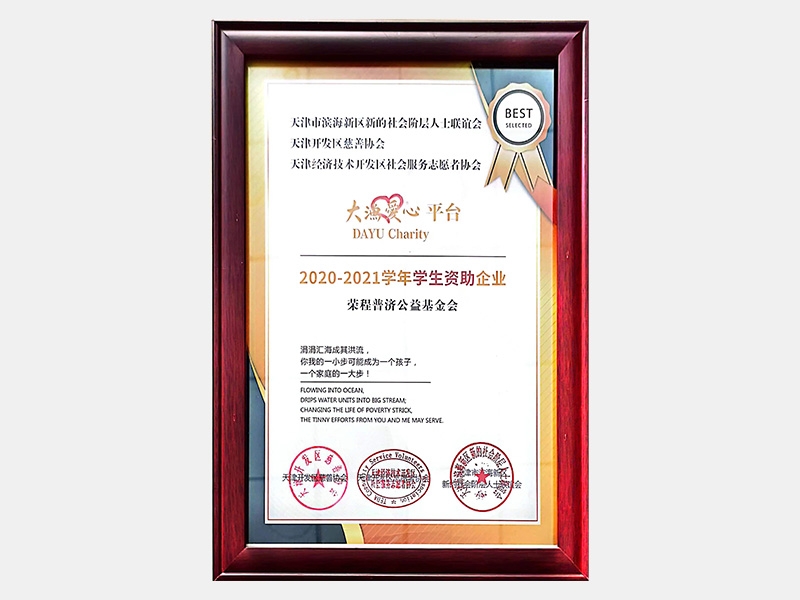 “倾力参与2021乡村振兴公益慈善帮扶活动”荣誉证书