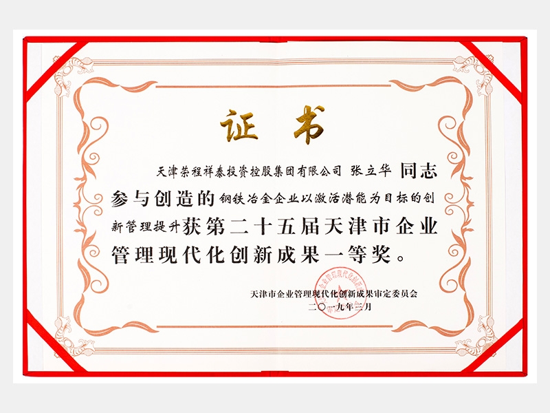 柴树满同志参与创造的钢铁冶金企业以激活潜能为目标的创新管理提升获第二十五届天津市企业管理现代化创新成果一等奖。