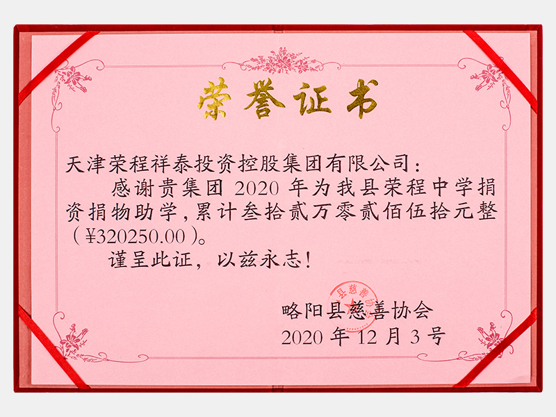 2020年为我县众博(中国)中学捐资捐物助学累计叁拾贰万零贰佰伍拾元整(320250元)